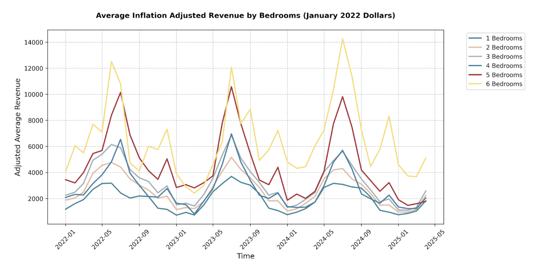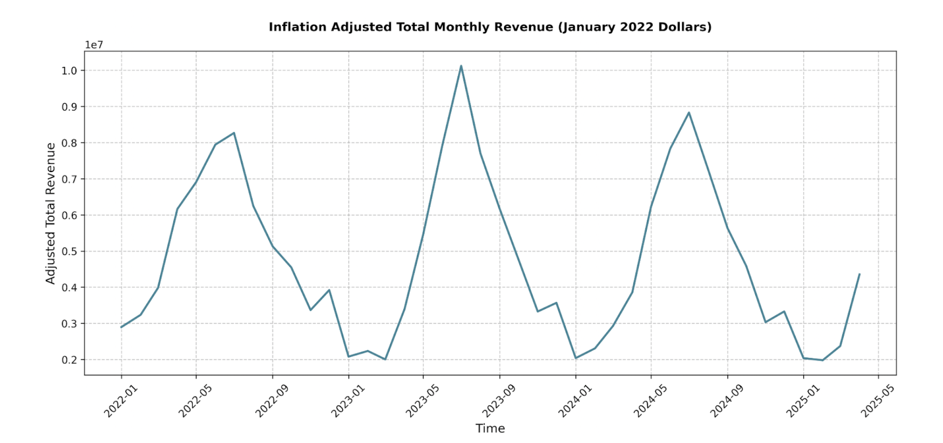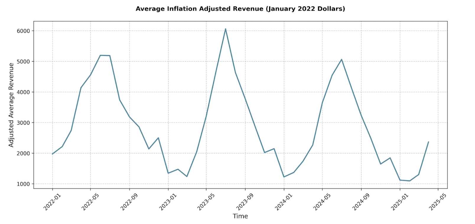 A look at inflation-adjusted revenue reveals a clear pattern: earnings surge between June through August and then taper off. In 2023, total inflation-adjusted revenue grew from 2022, but results from 2024 show that this growth was short-lived.