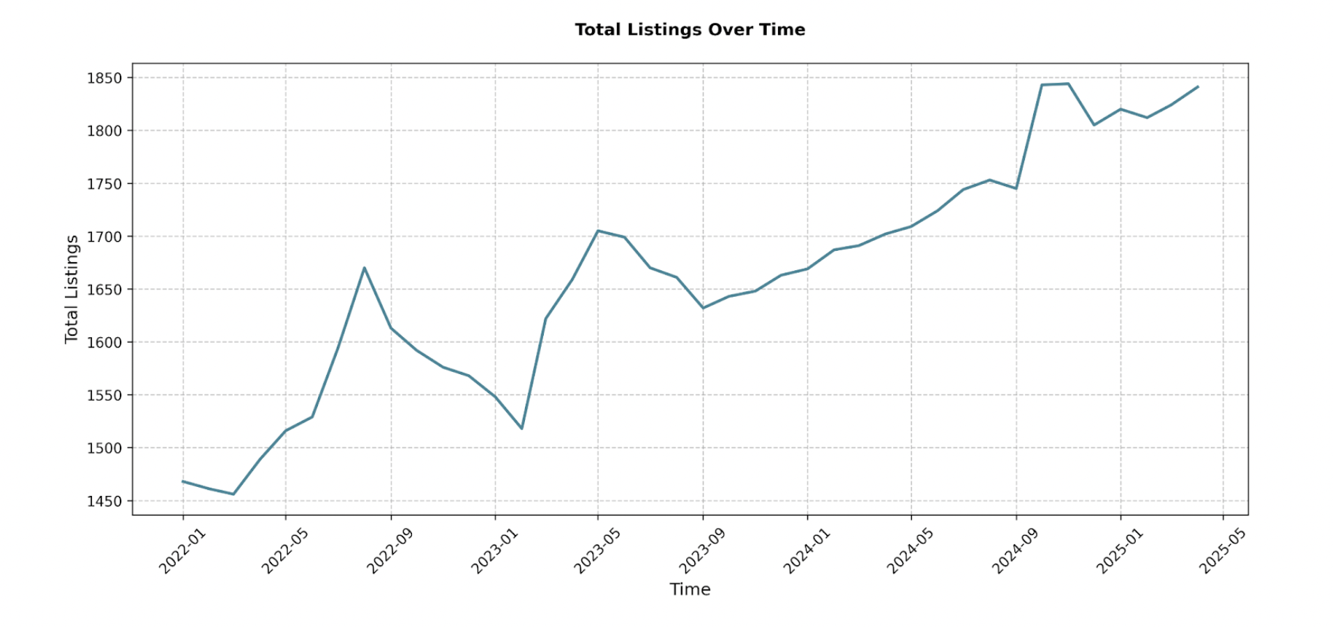 At the same time, the number of STR listings has steadily climbed, growing from 1,468 in January 2022 to 1,820 by January 2025—a 24% increase.