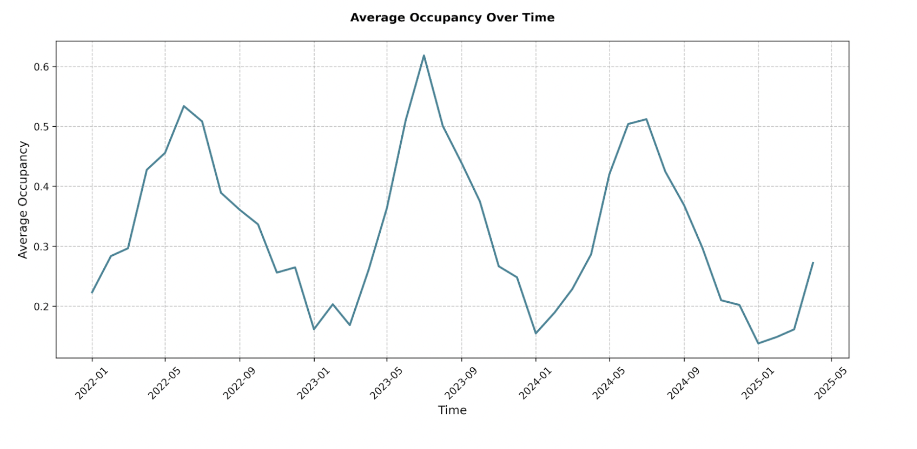 • Occupancy: Average occupancy in January has fallen from 22.3% in 2022 to 13.8% in 2025.