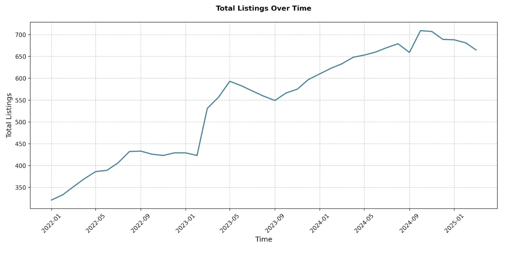 - Demand Growth Hasn’t Matched Supply: Average revenue per listing hasn’t consistently matched the explosive growth of the total market revenue. Peaks in 2024, while strong, haven’t surpassed 2022 highs when adjusted for inflation.