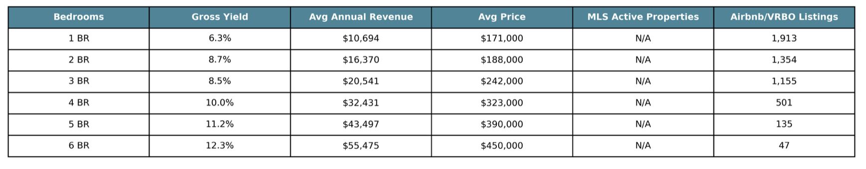 So which property size is best for investing in the STR market in Indianapolis? If you have more to spend on a property and have plenty of time to put into your search, a five- or six-bedroom properties are the best choice, as they offer high returns in this market. But, if you’re looking for returns with a more moderate initial investment, a two- or three-bedroom properties are solid.
